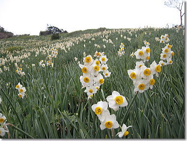 灘黒岩水仙郷にて、斜面一面に咲く水仙