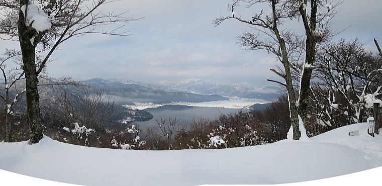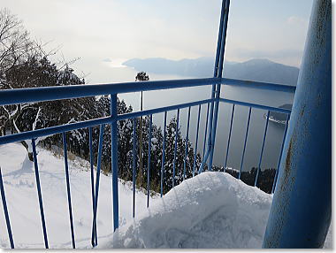 | “新雪の大観”余呉湖を眺める。14:32 |