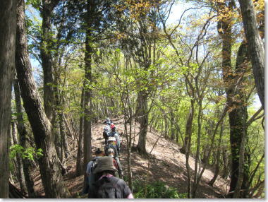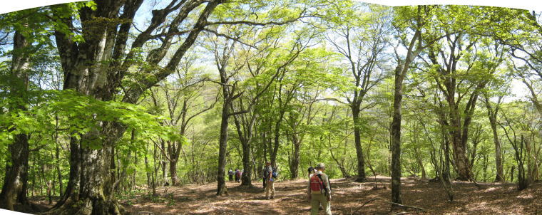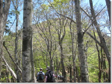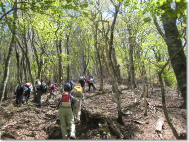 ブナ・カエデの樹林。急坂を登る 10:35 |