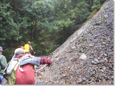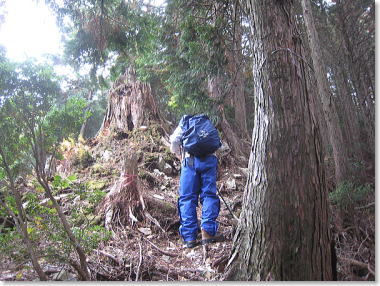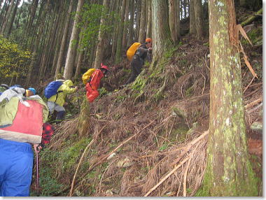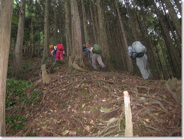 | すぐに、杉林の中を、急登となる。 11:13 |
