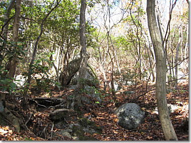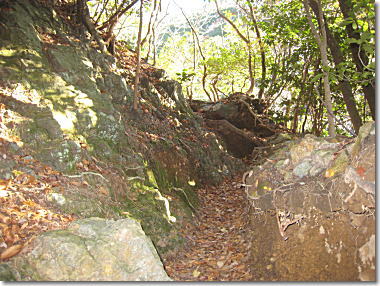 | 近くから・・・岳峠・手前から、鎌ガ岳・山頂を見上げる 10:41 |