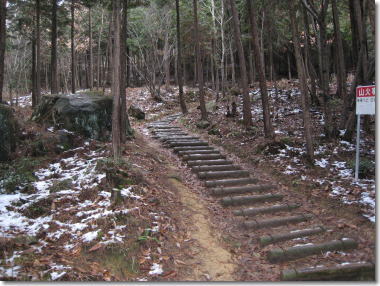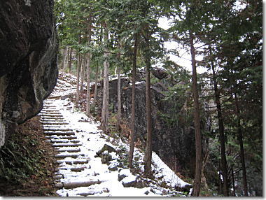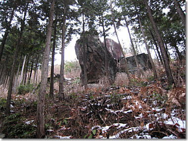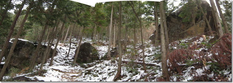 | 行者山、杉林に大岩が点々(右・大日岩) 9:23 |