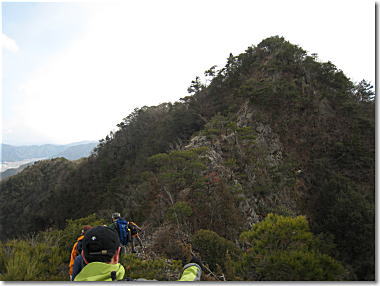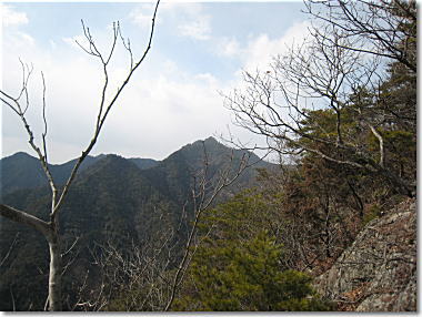 岩尾根の下り。あれが、登った七種山 13:56 |