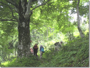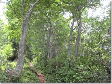 | ブナ林の中、急坂を登っていく 12:58 |
