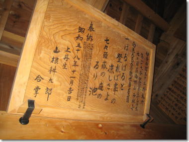 るり池は、『村の舞姫に選ばれた少女に、突然腫れ物ができたが、池の水で洗うと、元の美しい肌に戻った』という伝説が残っている。それ以来、るり池の水は、女性の肌を美しくするといわれ、水を求めにくる人がいるという。池というより、しずく・・だが、何10年も経て落ちてくるミネラルしずくである。 |