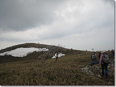 | 残雪の向こうが、霊仙山・山頂 13:50 |