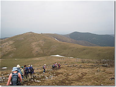 西南尾根から、最高点を経由して、山頂に向かいます。ここは、雪が降ったり、霧が出ると、地形が分からなくなるのです。遭難騒ぎが起きるというのも、わかります。どこを向いているのか、わからなくなるのです。八甲田山に近い地形です。