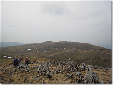 | 山頂を去り、経塚山へ向かう(カレンフェルトが点在するカルスト地形) 14:07 |