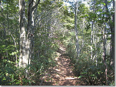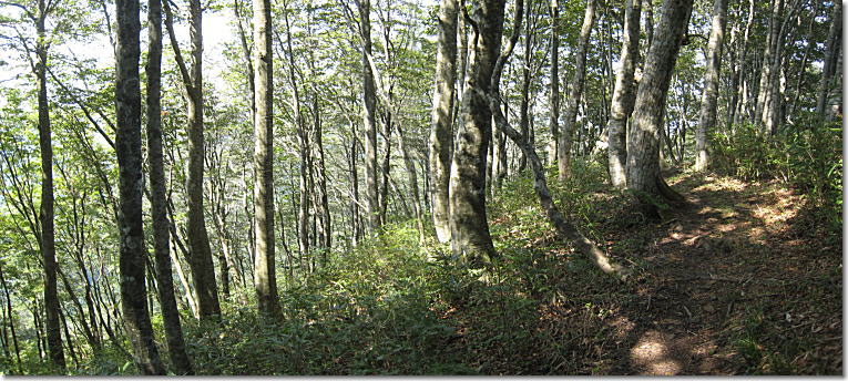 ブナ林の尾根道は、丁度良い日陰。
