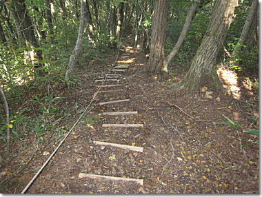 急な木階段を、気を引き締めて下る