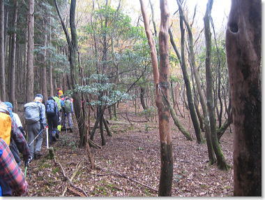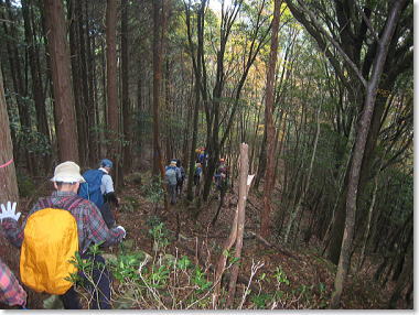 | すぐに、杉林の中を、急登となる。 11:13 |