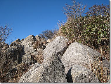 | 近くから・・・岳峠・手前から、鎌ガ岳・山頂を見上げる 10:41 |