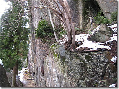 | 行者山、杉林に大岩が点々(右・大日岩) 9:23 |