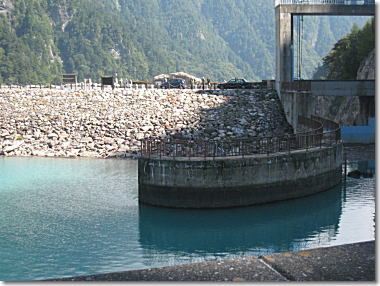 高瀬ダム湖の風景(左に、裏銀座の山々) 8:53