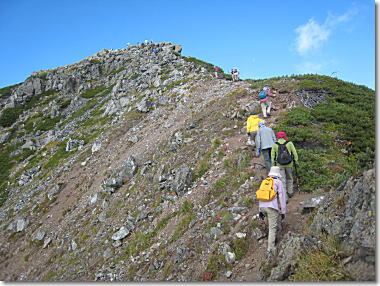 あれが山頂だ・・と言いながら、ガレ場を登る
